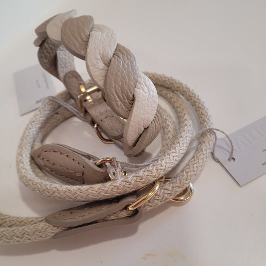 Set collare più guinzaglio burro/tortora