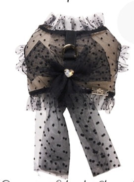 Super chic tailoring harness in romantico plumetis più leash lingerie