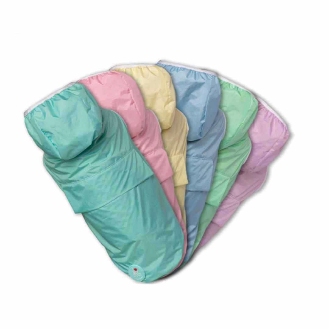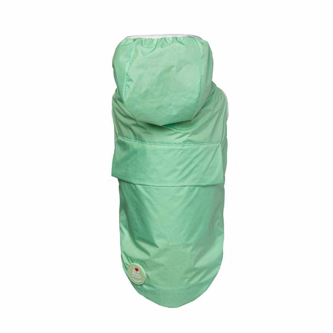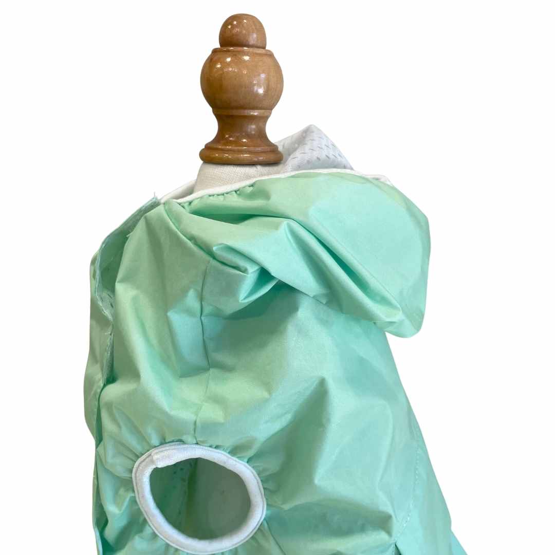 Teal technical waterproof jacket with breathable white mesh lining to keep your little four-legged love dry!