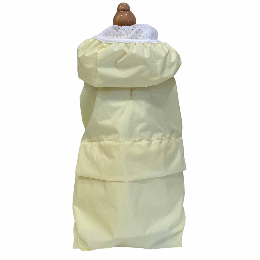 Pastel yellow technical waterproof jacket with white breathable mesh lining to keep your little four-legged love dry!