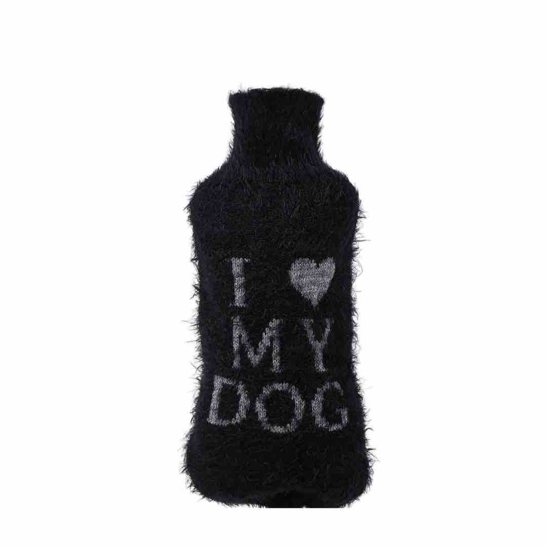 Turtleneck sweater in wool furry effect for small dogs, with inlay of the logo I Love My Dog on the back.