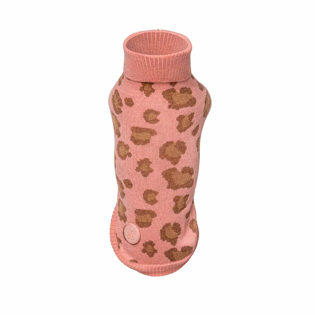 Leopard Elegant Turtleneck Sweater Pink