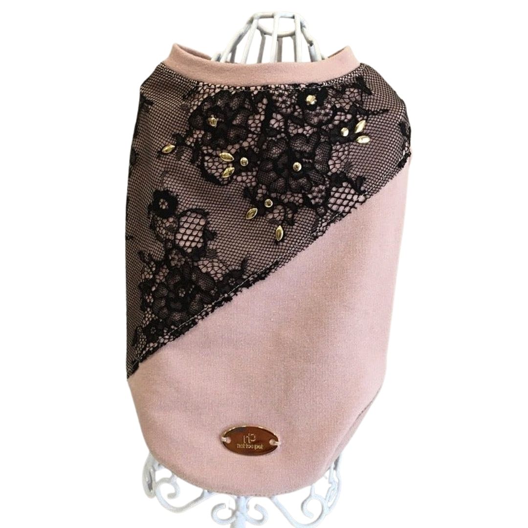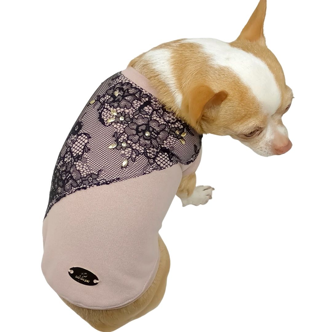 Rock fashion T-shirt 100% cool cotton with the application of fine lace fabric and light gold studs - Fitting 3/4