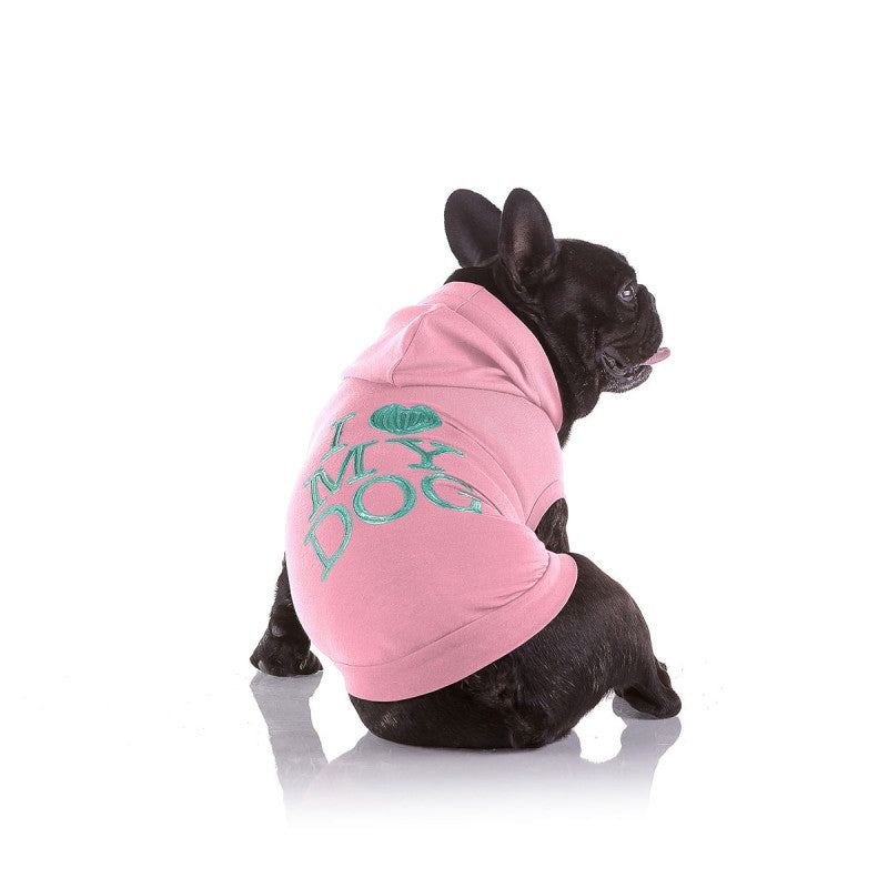 Sweat-shirt à capuche, frais et coloré en 95% coton et 5% élasthanne, doux et extensible. Logo I ❤️ MY DOG en silicone coloré au dos, fermeture par une double rangée de boutons à pression.