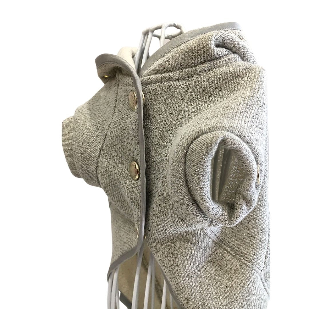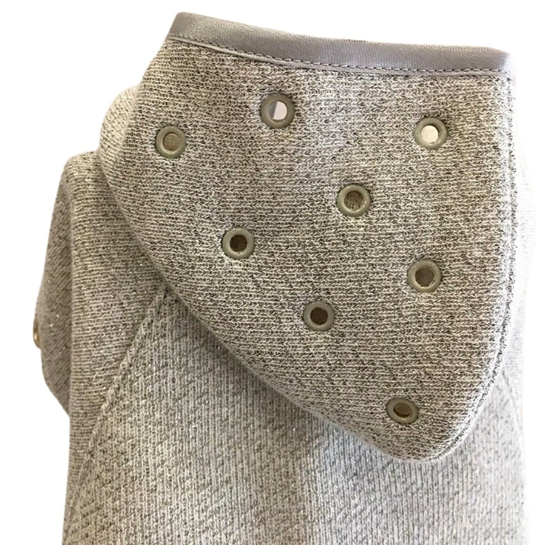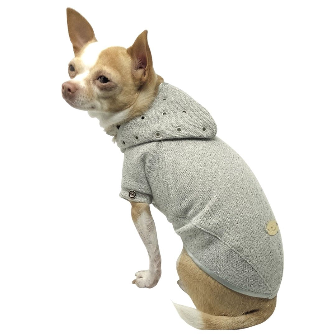 Elegante felpa grigia per piccoli cani con applicazione di Vele smaltate tono su tono sul cappuccio.Pratica chiusura con bottoni a pressione per una vestibilità regolare.
