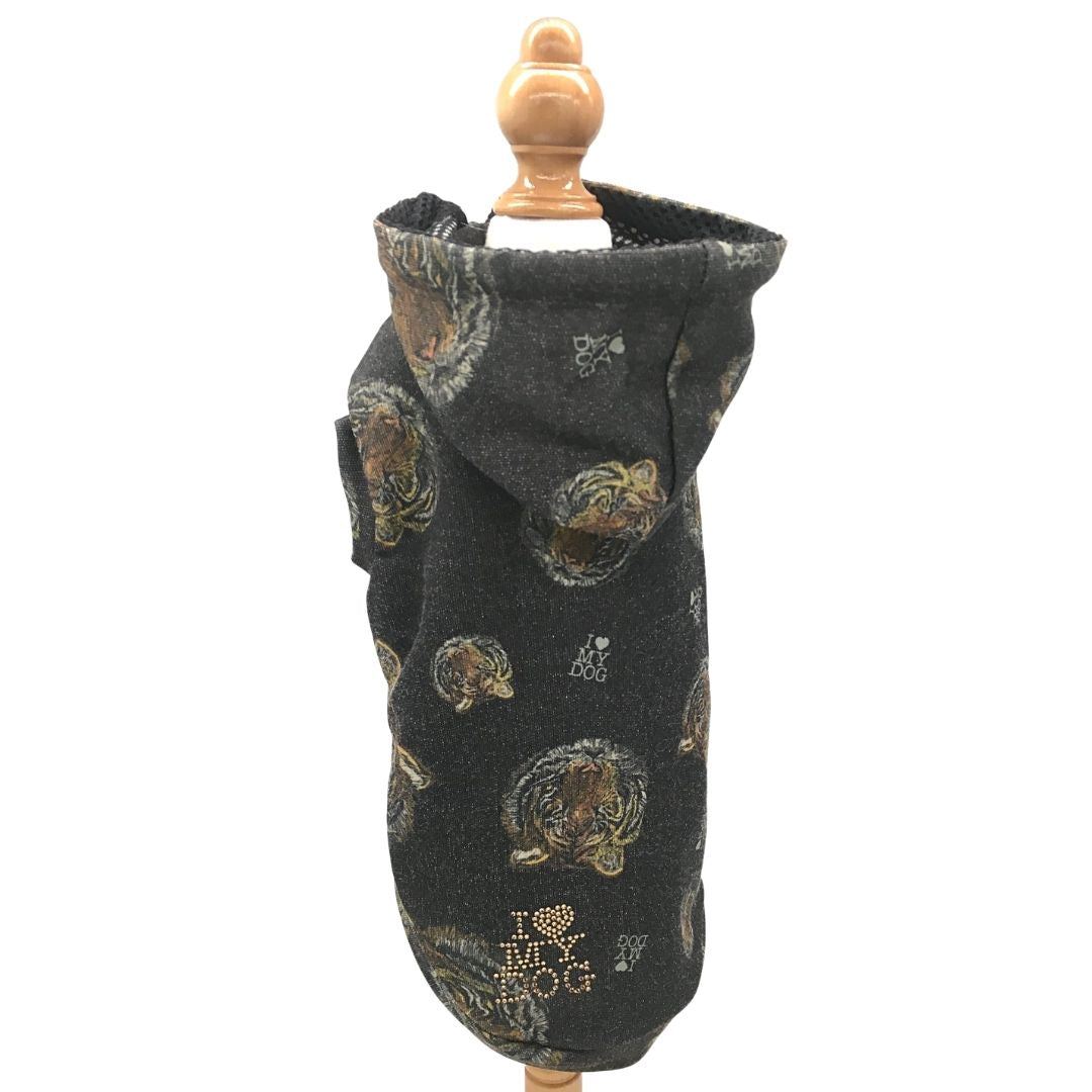 Felpa in tessuto cotone misto poliestere, fodera interna fresco tessuto di rete traspirante. Stampata fantasia tigre.