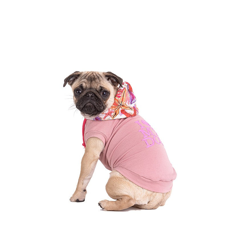 Felpa rosa per cani con interno foderato con tessuto summer: stelle marine