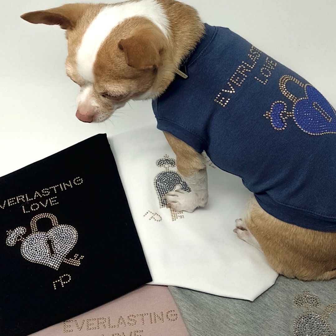 Preziosa T-shirt per il vostro cucciolo 100% cotone con applicazione di Strass in cristallo di Boemia e borchie light gold Vestibilità 3/4 - UNISEX